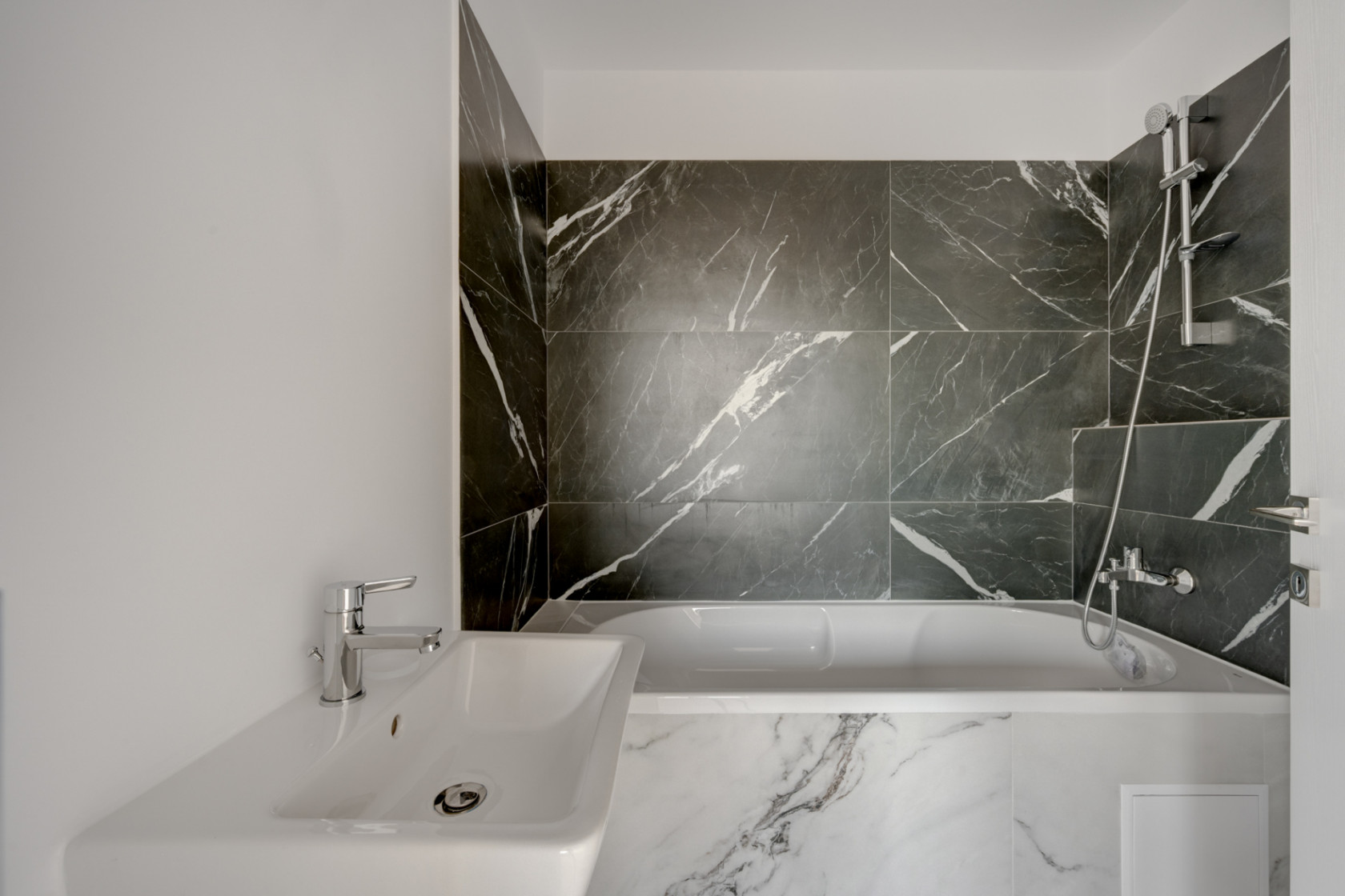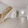 Parchetul de calitate, ușile albe, scara placată cu lemn, amenajarea băilor cu plăci ceramice de culori neutre, montate cu atenție, formează un tot unitar.