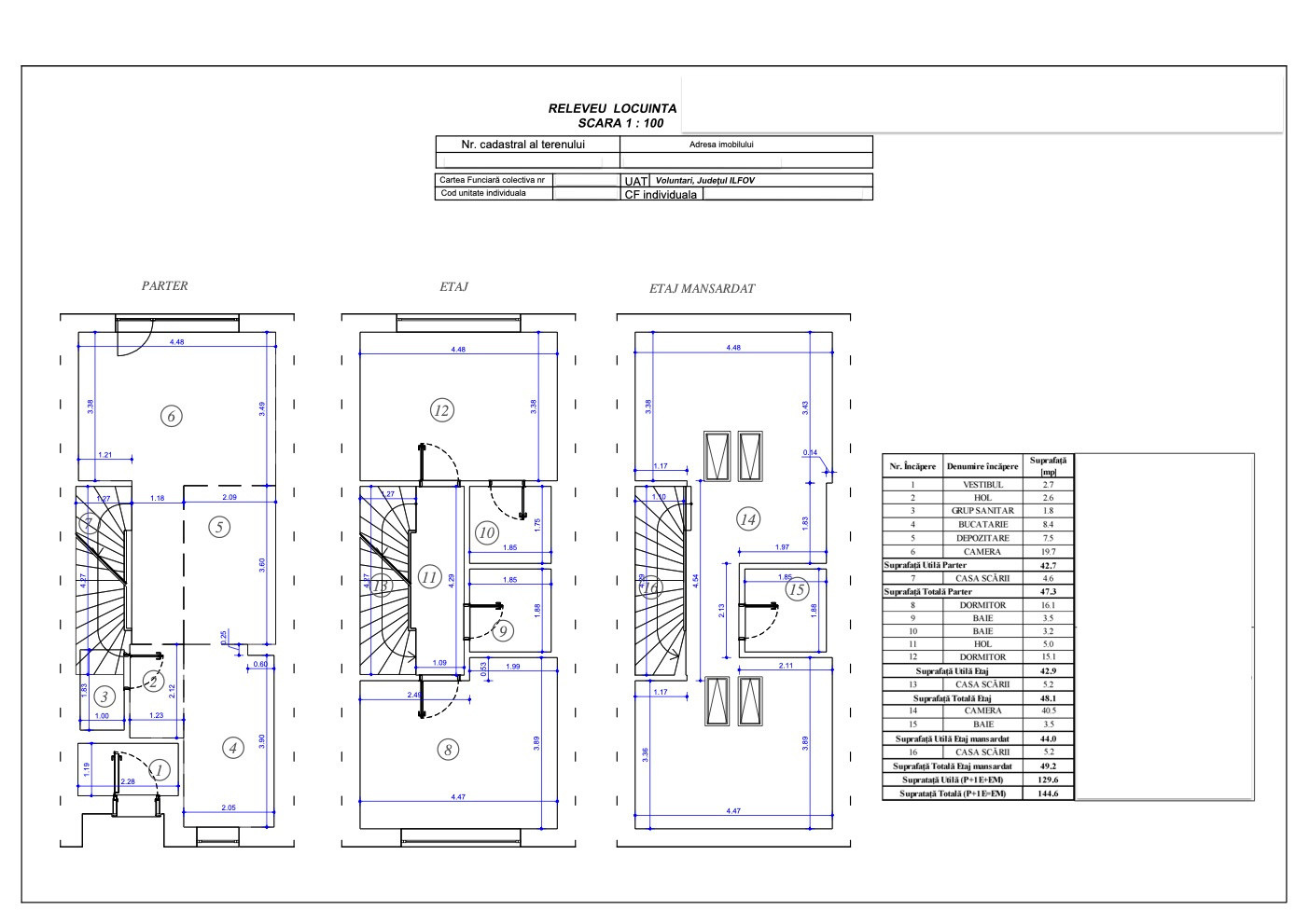 Suprafața utilă a unei case este de 144,6mp și suprafața de teren a proprietății este de 212mp.